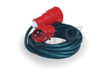 Komplet smontován se zástrčkou a spojkou CEE. Gumový vodič H05RRF 5 x 1,5 mm2. Zástrčka/spojka, atest VDE, barva černá, zástrčka/spojka červená.
